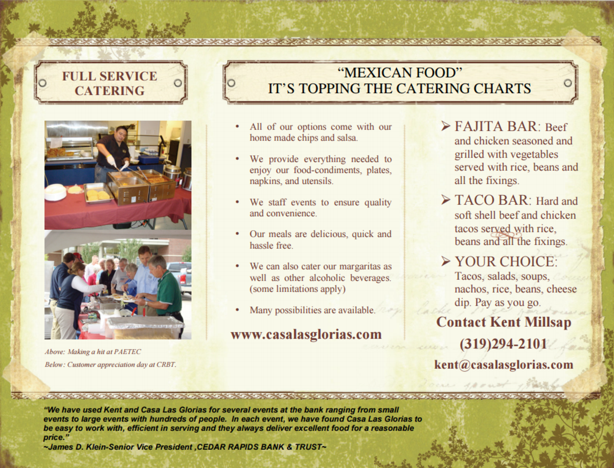 Mexican Food Catering Authentic Mexican Food Casa Las Glorias Cedar Rapids Ia